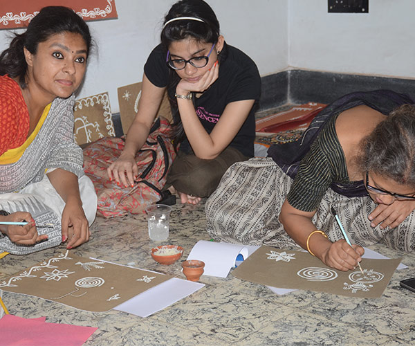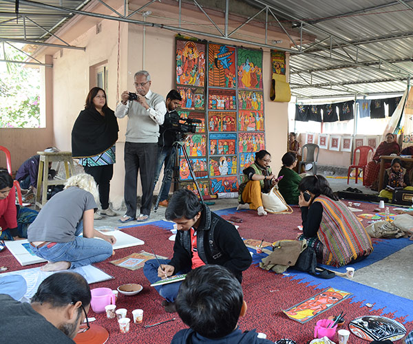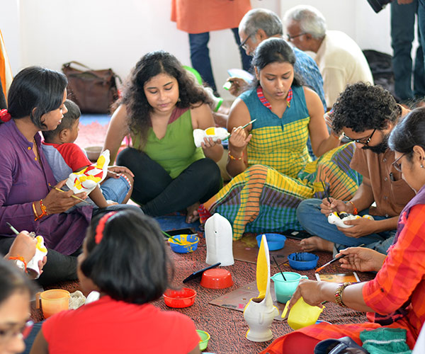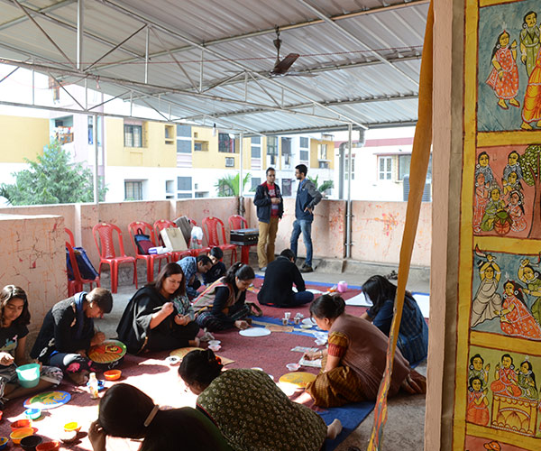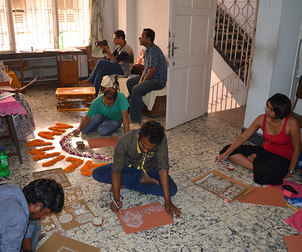 Pot-Akopot – Worshop on Patachitra (Scroll Painting) of Bengal, Date: 27th December 2015. Mentor: Shri Manu Chitrakar and his daughters Ms. Mau and Ms.Ria from Nayagram village, West Midnapore, West Bengal