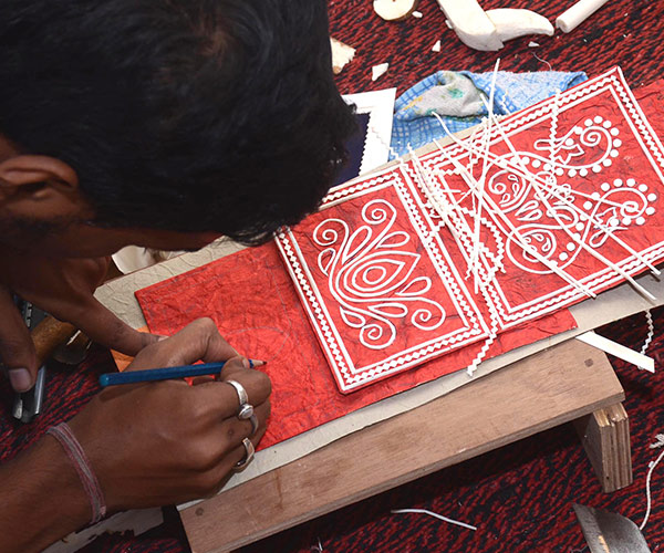 Tal Patar Sepai – Workshop on Traditional Palm Leaf Sepoy Making. Date: 28th September 2019, Mentor: Shri Madan Mohan Dutta of Guskara, Burdwan, West Bengal. Invited Artists: Shri Hiran Mitra, Prof. Partha Pratim Deb, Shri Bipin Bihari Martha, Shri Saumen Khamrui